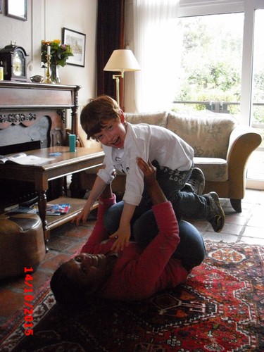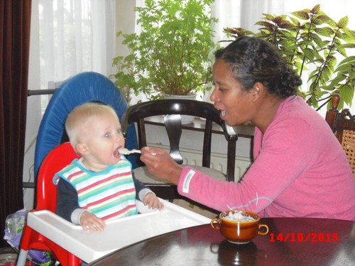 boven om Chris te halen terwijl ik alvast pap maak. In z'n