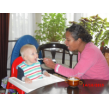 stoel wippen, met z'n armen zwaaien en roepen: "bu-bu,