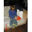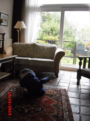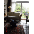 door en is al gauw klaar met eten. Gaat dan op de bank zitten, als ik