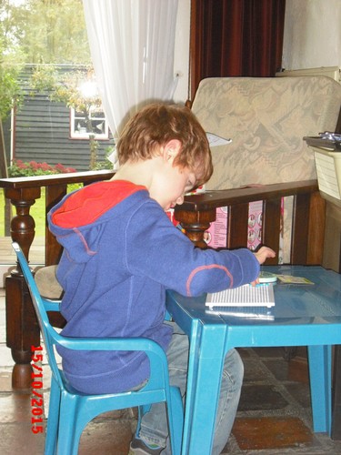z'n werkjes en dan naar binnen, Bart wil gelijk een tablet spelletje,
