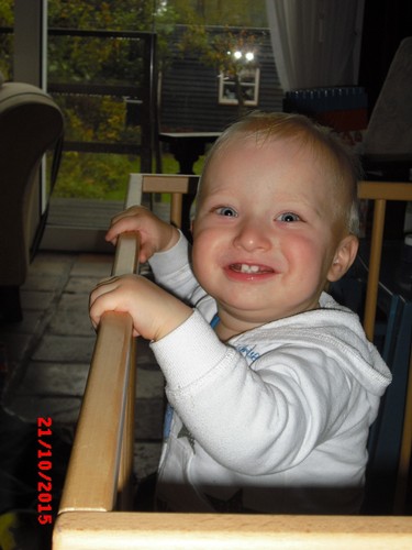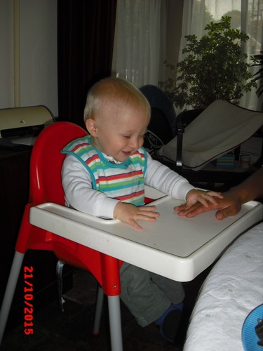 hij ontdekt de grote wereld met grote animo. Heeft al gegeten, tR