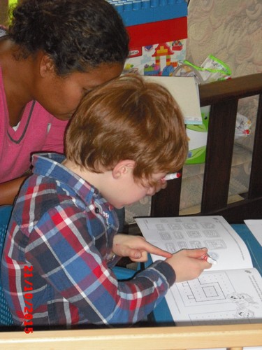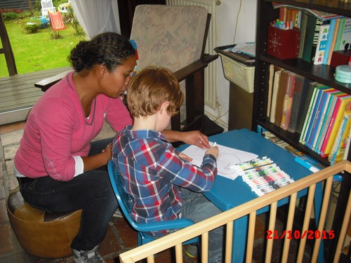 nieuwe viltstiften uitpakt, Chris even bij tR op schoot en dan in z'n
