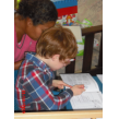 met z'n nieuwe viltstiften, daarna 'schrijven' in z'n schrijfboek.