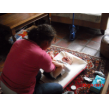 help verfspullen klaar te zetten, Bart doet zelf z'n verfschort aan