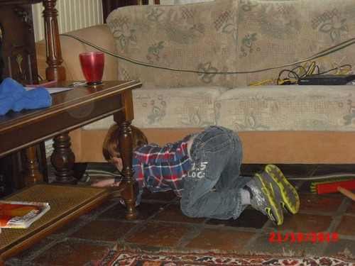 is belangrijk dus naar bed. Als we z'n kamer uitlopen is hij