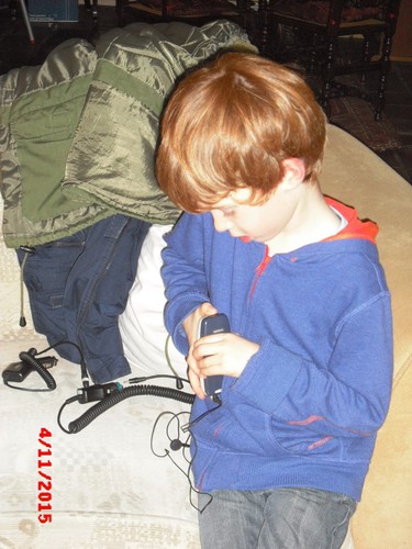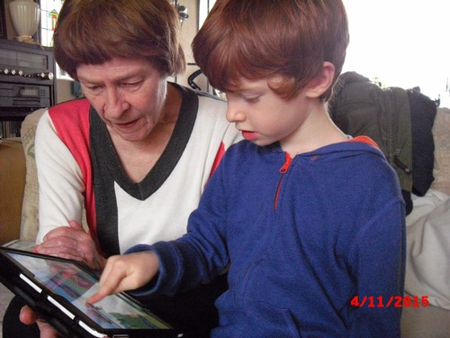 in slaap, ademt rustig. Bart en ik doen spelletjes op de tablet: