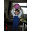 "Oma wil je mijn ballon opblazen? En dan een knoopje erin". Bart speelt er een tijd mee: springen, omhoog gooien en proberen te vangen. Dan weer even verder met z'n toeter, de kletsnatte roltong hangt helemaal los, "die knip ik er even af met mijn schaar". Ook nog een tijdje bellenblazen, ondertussen veel niesen en steeds: "oma ik heb een snottebel".